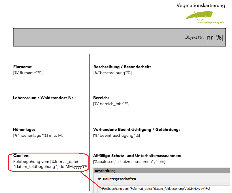 Eine weiteres Paradefeature von QGIS sind die Expressions, eine universelle Beschreibungssprache, die an fast jedem Aspekt von QGIS datengetriebene Anpassungen in einer einheitlichen und eleganten Syntax erlaubt - zusammen mit dem etwas frickeligeren PyQGIS lassen sich aber viele Features im technischen Rahmen von no code und low code umsetzen. Eine wichtige Komponente der Mini-Fachschale sind die Data Driven Reports, die komplett mit normalen Konfigurationsoptionen, QGIS Expressions und ein wenig HTML realisiert werden konnten.